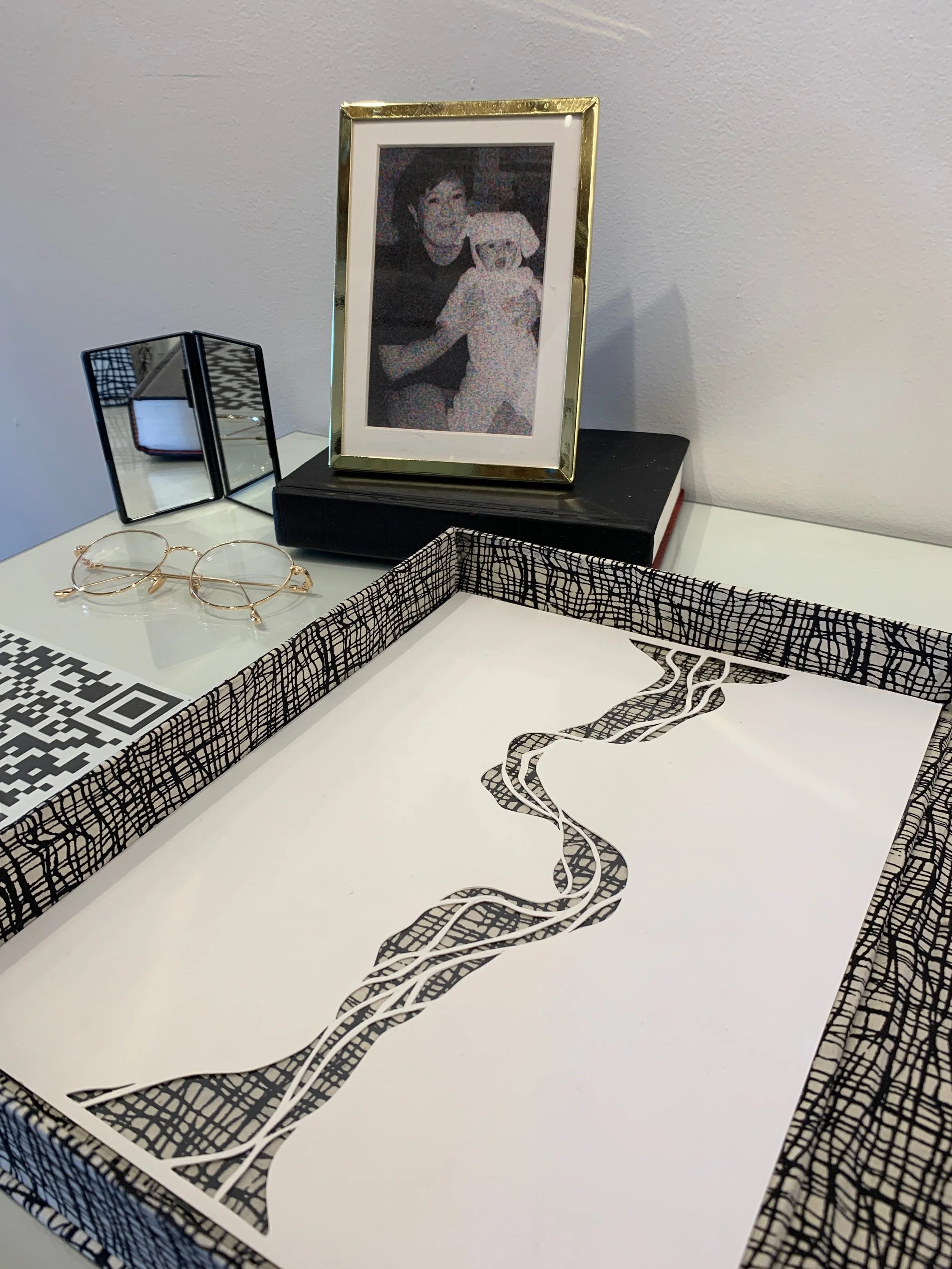 The eight realms to be explored are compromised of all my own making—from writing, painting, custom typography and systems, photography, projection, papercut, and voiceovers.